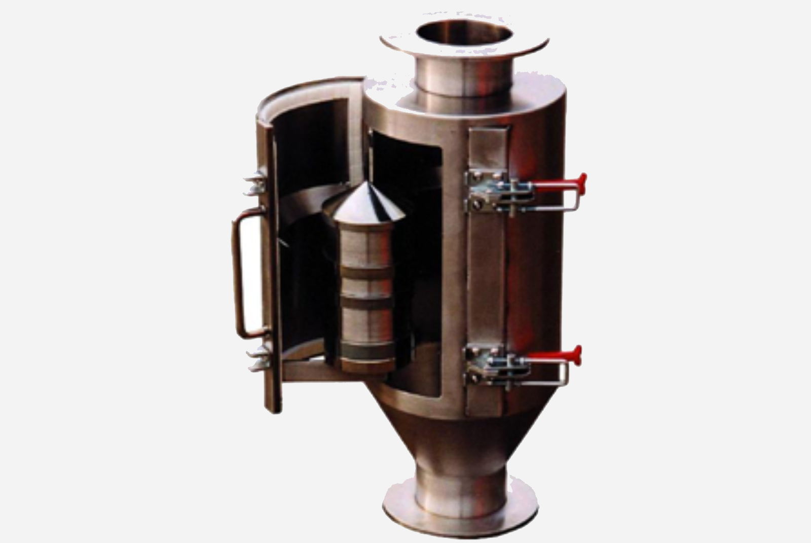 Commonly used in the bulk product processing and plastics industries, Helix Magnet pneumatic line magnets are used to remove inbound tramp metal from products conveyed by air. Also known as cartridge magnets or bullet magnets, MPI pneumatic line magnets, available in a variety of models, feature a 100% stainless steel enclosed assembly and an exclusive tramp metal cleaning design.