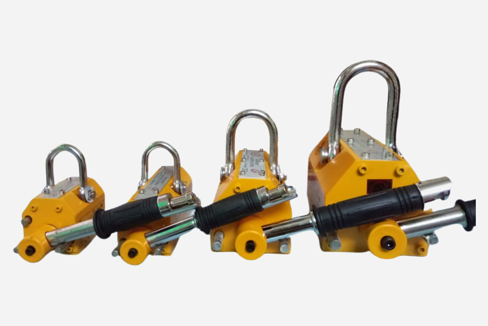 These are used to lift and transport, steel and iron slabs, sheets, rounds for factories, warehouses, small fabrication units, Engineering Units and many more. Turning the manual handle activates or turns off the magnet. Finds a major application near flame cutting and during fabrication job. Used for handling steel plates, blocks, rounds, press molds and die tools loading/unloading in machines.